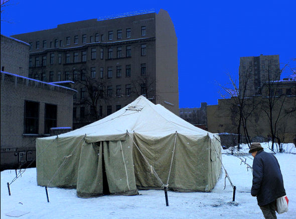 Dieses Jahr ist das Überlebenszelt an der Borowaya-Strasse 112B errichtet worden, gleich gegenüber des Aufnahmezentrums der russischen Nichtregierungs-Organisation. Das Borowaya-Zelt wird voraussichtlich der einzige Ort der Hilfe sein, dies trotz der Versprechen der petersburger Behörden.