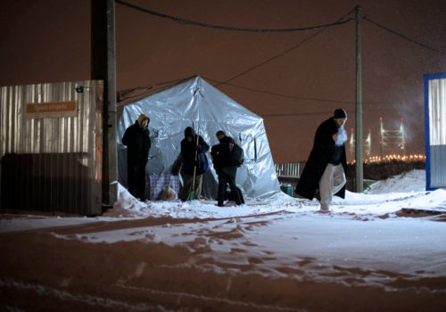Une bonne partie de la nuit, ils l’ont passée aux alentours du Centre d’Accueil de Moscou, dans le vent…