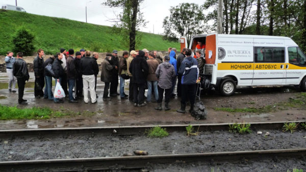 Monatlich werden durch den Nachtbus in St. Petersburg im Durchschnitt 300 warme Mahlzeiten verteilt, dadurch werden Hunderte von Menschen gerettet.