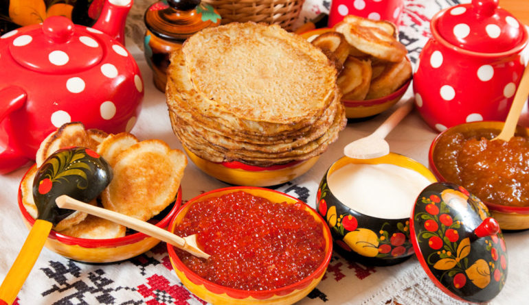 En Russie, son emblème est le blini, cette crêpe russe. De toute sorte, de toute forme, de toute saveur, les blinis règnent en maître ces jours-ci.