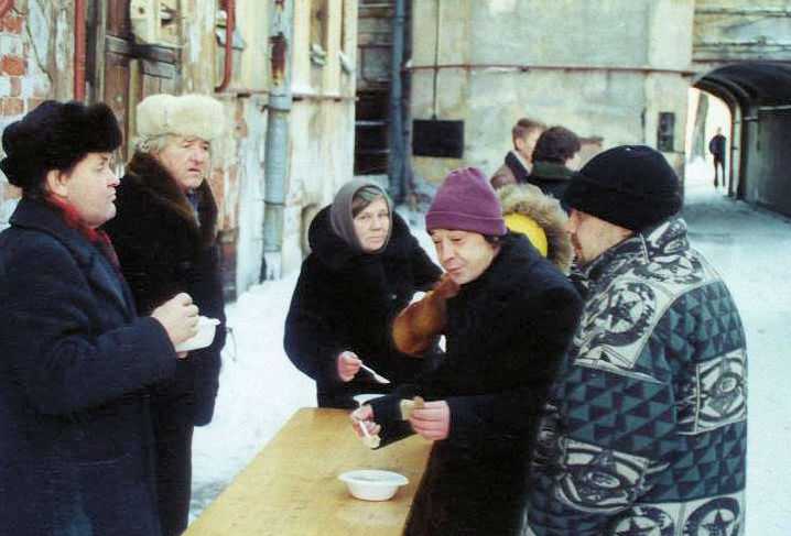 In jener Zeit, erklärt Sokolov, ist es einfacher, schwarz zu arbeiten als Nahrungsmittel zu erhalten. Für die Obdachlosen ist es unmöglich, Coupons zu erwerben. Für den Bürgermeister von St. Petersburg, Anatoly Sobtschak gibt es in der Stadt keine Obdachlosen.
