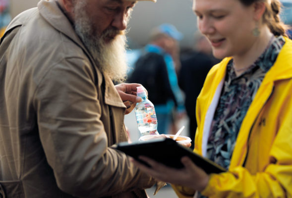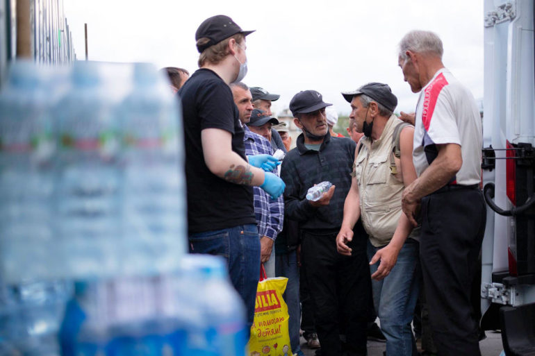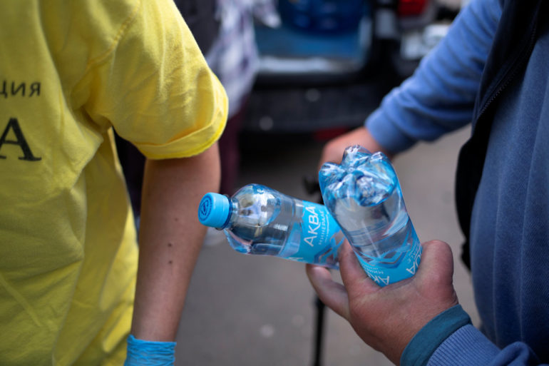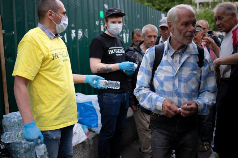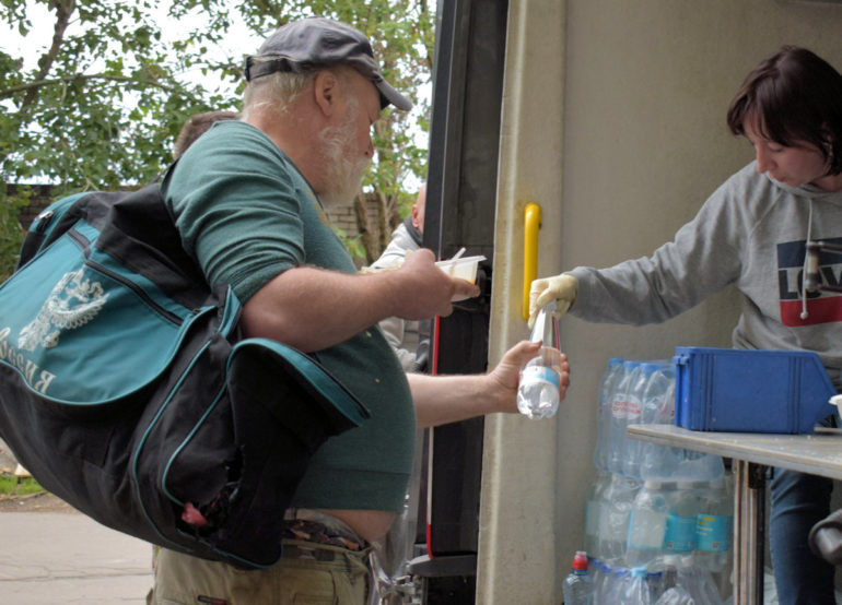 Pour un sans-abri il est très difficile de se désaltérer. Très rares sont les points d’eau potable public. Face à ce problème récurrent, chaque été Nochlechka organise de nombreuses distributions d’eau.