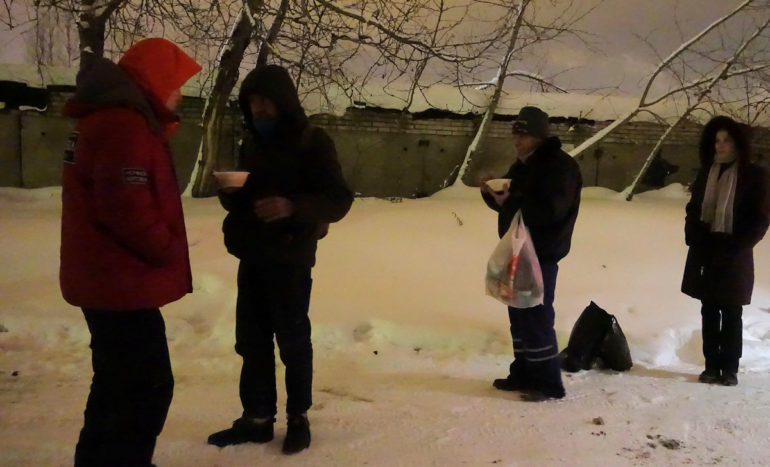 La survie en hiver n’est pas un vain mot, chaque année plusieurs centaines de sans-papiers sans-abris en meurent. Nochlechka leur vient aide.