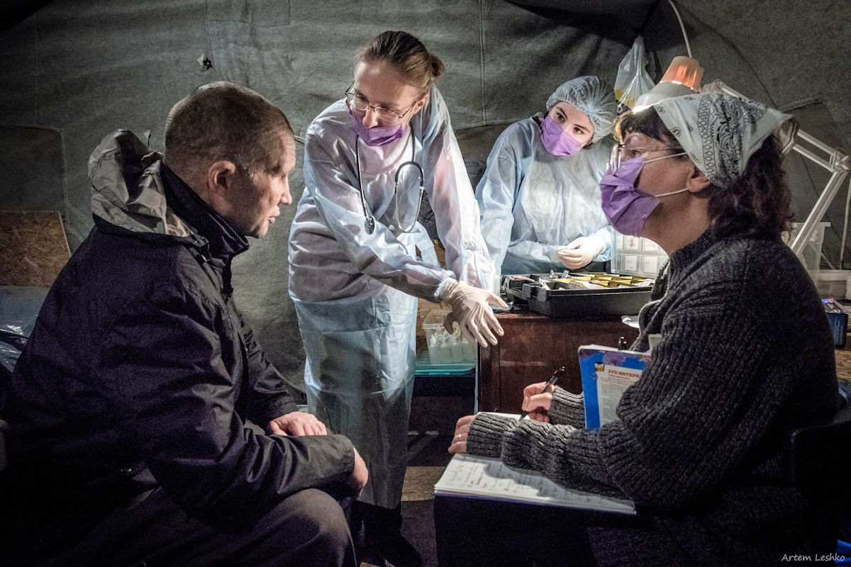 Elena, noch in ihrem Arbeitsanzug, nickt: das Schönste in diesen Zelten ist die Feststellung, wie gastfreundlich die Obdachlosen sind und wie bereit dazu, Pflege zu erhalten.