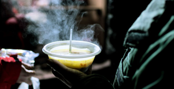 Avec les premiers bénévoles accourus, ils distribuent du concentré de soupe allemand et du thé.