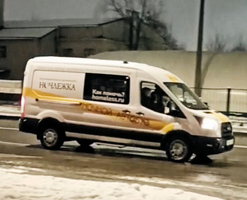 Il est là, oui, notre tout nouveau Bus de Nuit est là. Il était grand temps que nous puissions reprendre nos tournées nocturnes avec le Bus. En voiture, s’écrie Andreï Chapaev, responsable des actions humanitaires