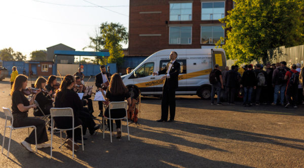 Début juin, Yuri Dorofeev, le chef d’orchestre moscovite, nous a contactés : l’art doit être accessible à tous, et non à quelques privilégiés. Notre scène n’est pas seulement celle des salles de concert, mais aussi tout endroit où les gens sont prêts à ouvrir leur cœur à la musique : qu’il s’agisse d’un bureau, d’un hôpital. Je vous propose d’accompagner votre prochaine distribution de vivres en musique.