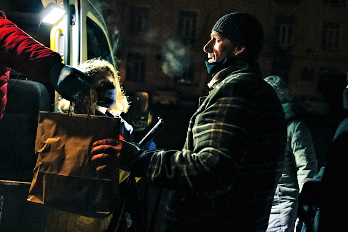 A Saint-Pétersbourg, tout au long de l’année 2020, malgré les contraintes du Covid, souvent seul, notre chauffeur du Bus de Nuit de Saint-Pétersbourg, Kostya Fomichev, n’a eu de cesse de sillonner les banlieues de la ville pour apporter aux plus démunis, des plats chauds, des produits d’hygiène, des masques et des gants, du réconfort aussi.