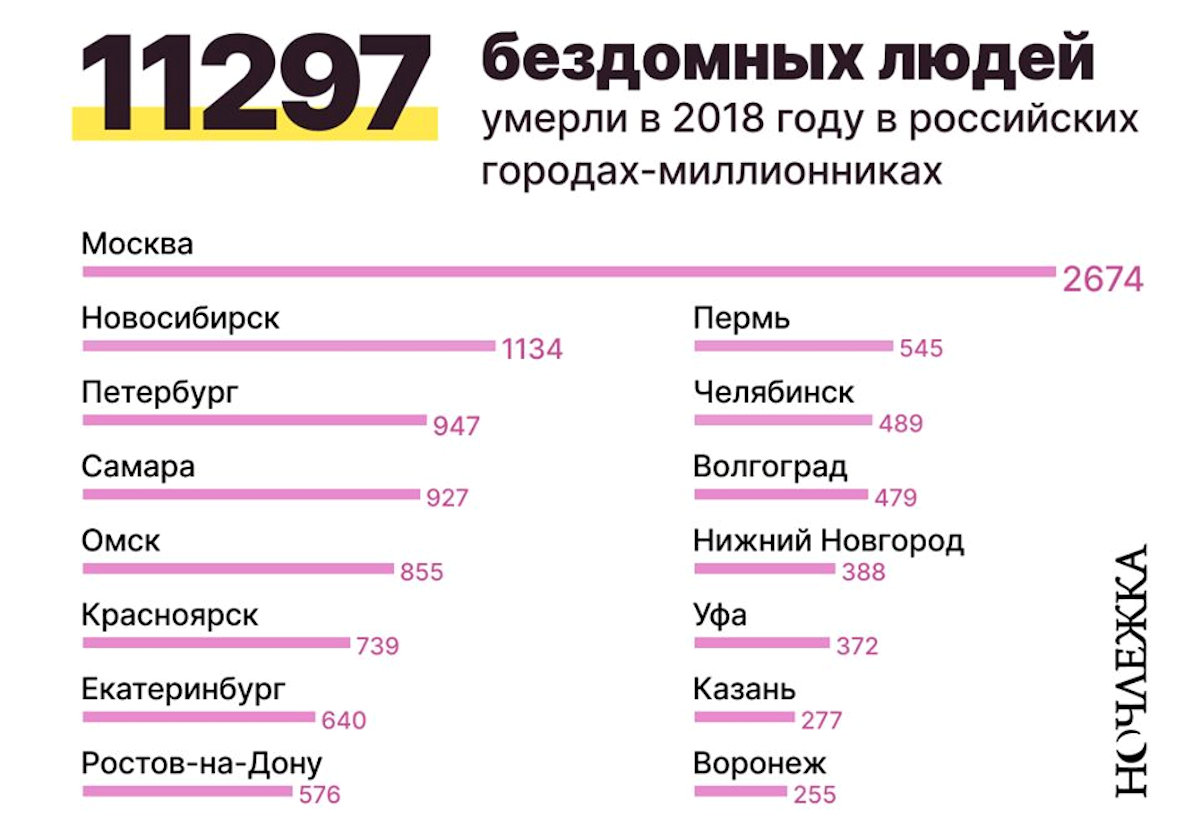 Chaque année, au total, entre 11’000 et 12’000 sans-abris meurent dans les 15 plus grandes villes de Russie.