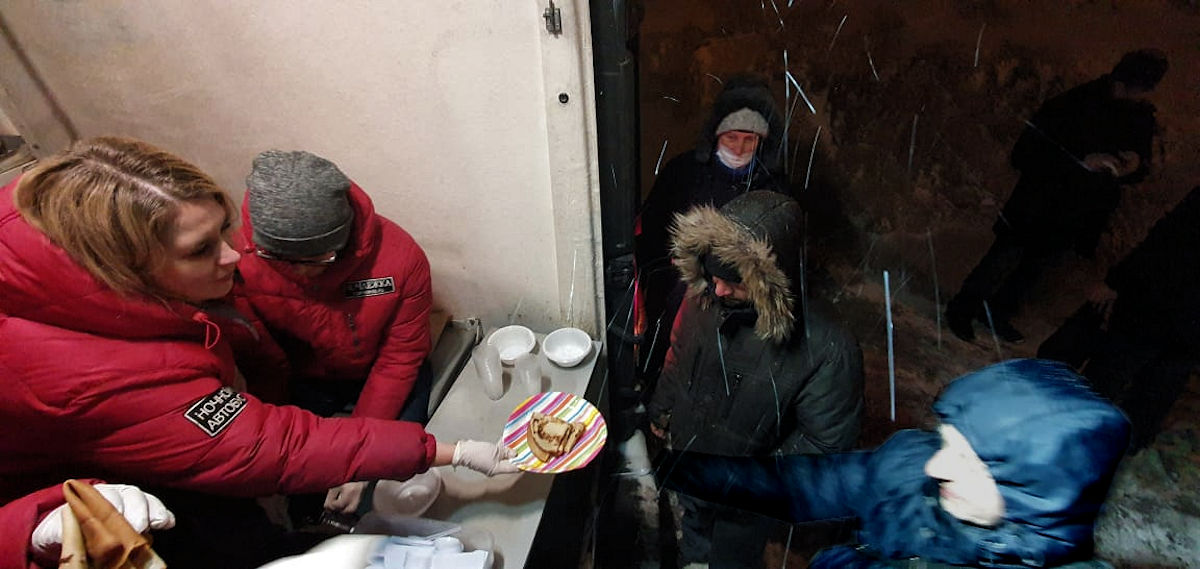 Maslenitsa est là, l’occasion attendue, espérée, pour les sans-abris souffrant du froid, de la faim, de diversifier leur régime alimentaire déjà si modeste, mais aussi de dire, symboliquement, adieu à l’hiver, cette saison qu’ils redoutent tant nous explique Andrey Chapaev, coordinateur des projets humanitaires de Nochlechka.