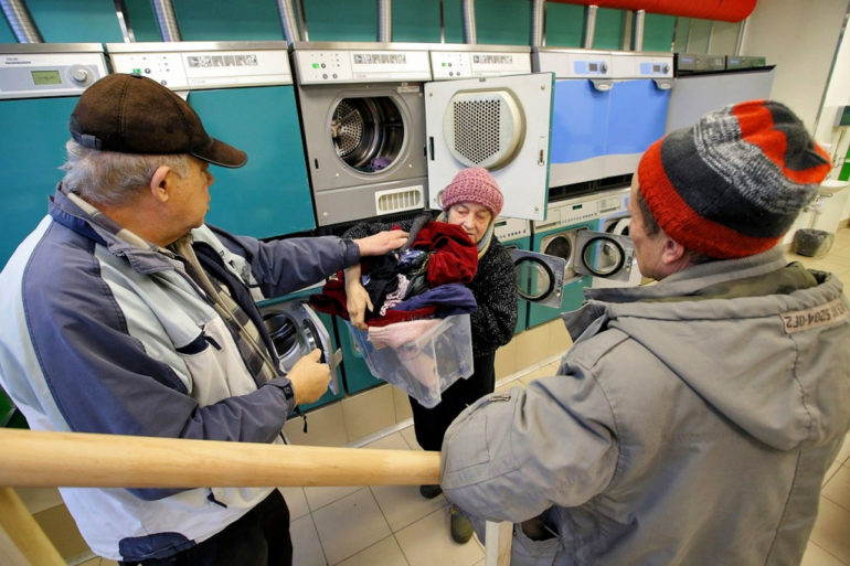 Sie sind sich nicht bewusst, was es bedeuten kann, saubere Kleider zu tragen, sagt uns Sacha beim Verlassen der vor fünf Jahren durch Nochlechka installierten Wäscherei.